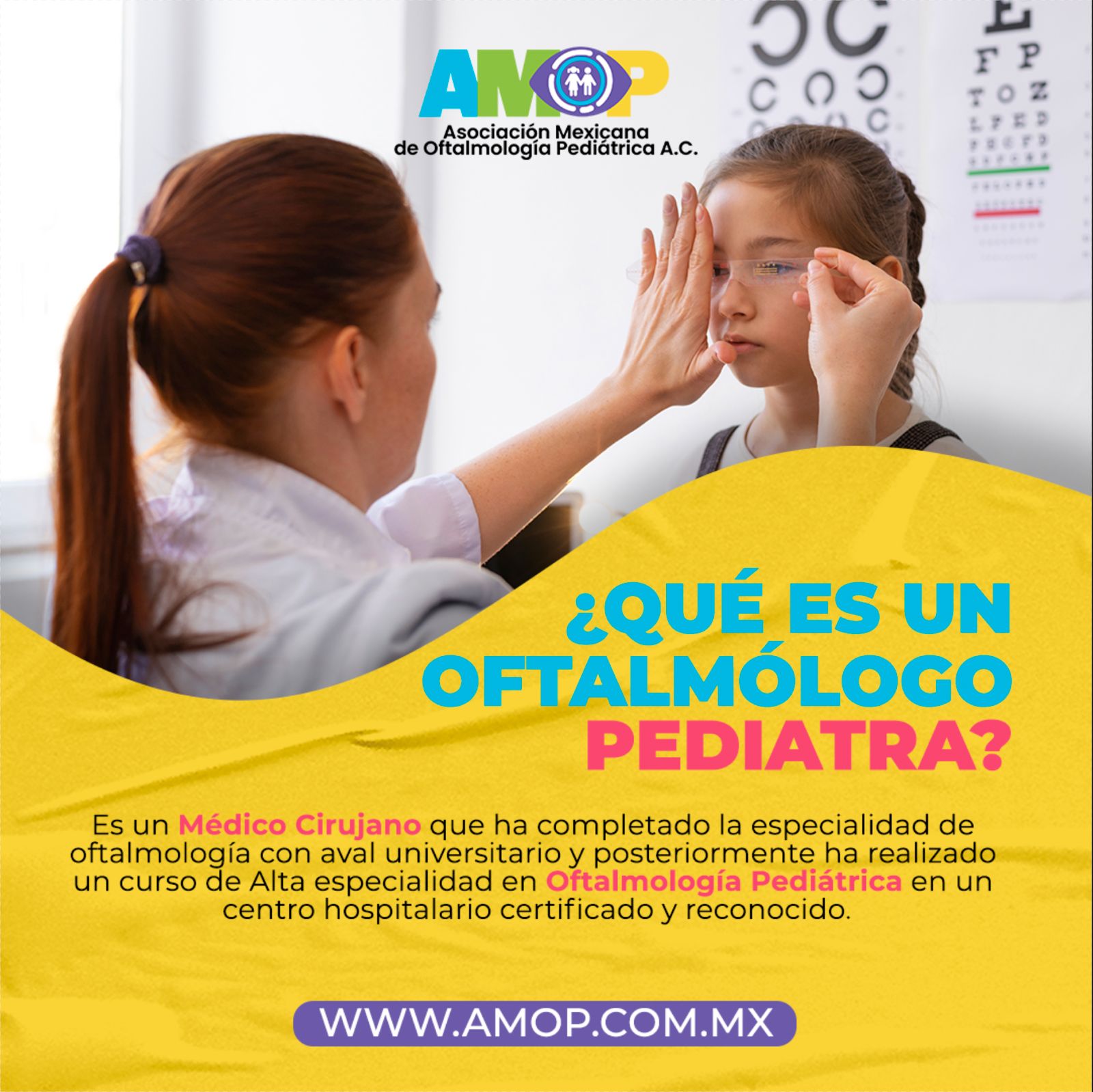 La AMOP es la Asociación médica, miembro de la Sociedad Mexicana de Oftalmología, que agrupa a los oftalmólogos pediatras que han completado los estudios necesarios para poder ejercer esta especialidad en México. Además nuestra Sociedad, capacita y actualiza continuamente a sus miembros con la finalidad de garantizar a sus pacientes que su médico se encuentre al día en los tratamientos mas novedosos que garanticen un manejo de excelencia a su paciente.